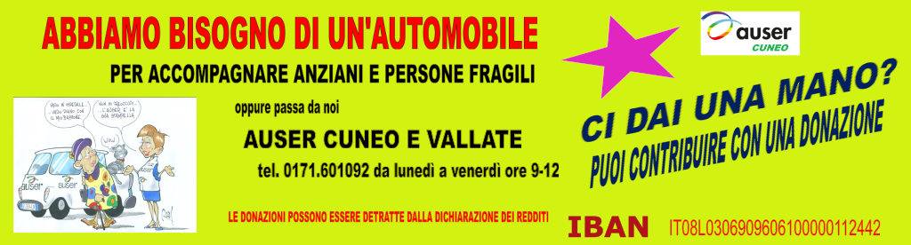 L’Auser Cuneo e vallate organizza per mercoledì 12 novembre prossimo una visita del Centro storico di Cuneo. L’appuntamento è per le ore 9,30 davanti alla statua di Barbaroux in Piazza Galimberti. Avremo l’occasione di ascoltare parecchi aneddoti e notizie storiche sulla nostra città, con un passato degno di essere conosciuto ma che, come spesso succede, viene apprezzato maggiormente da chi viene da fuori.…