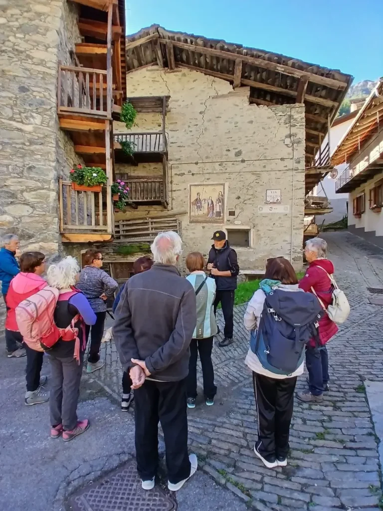 Finita la visita ci si è fermati, per il pranzo al sacco, nel Centro culturale “Torrette” messo gentilmente a disposizione dal Comune di Casteldelfino. In pomeriggio la visita è continuata nella borgata Chiesa del Comune di Bellino.